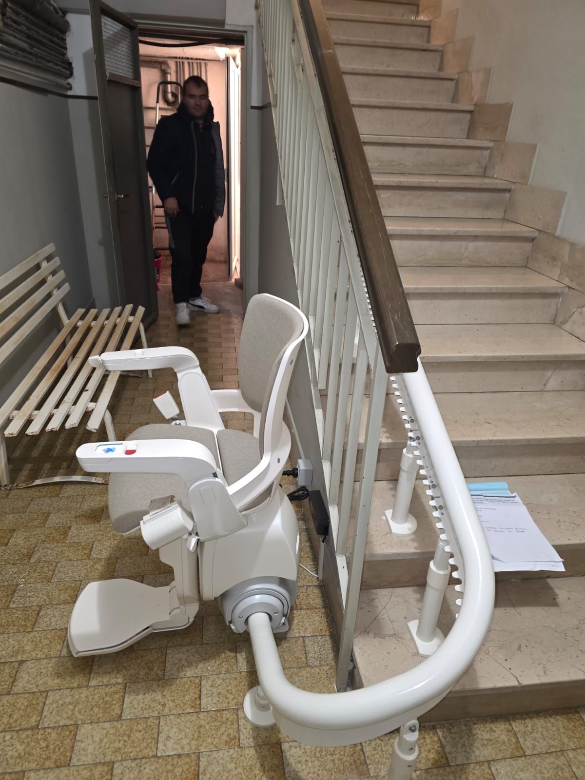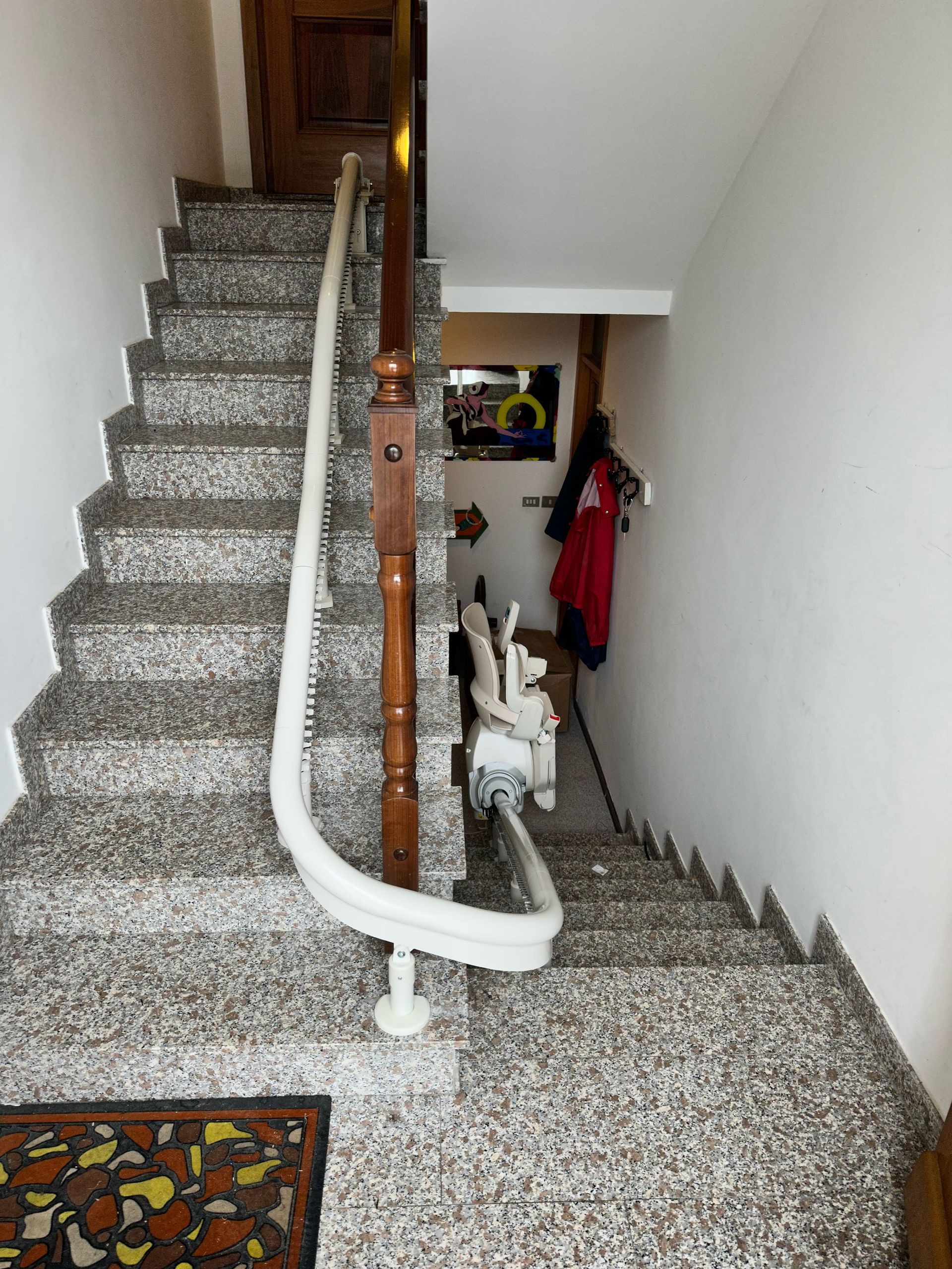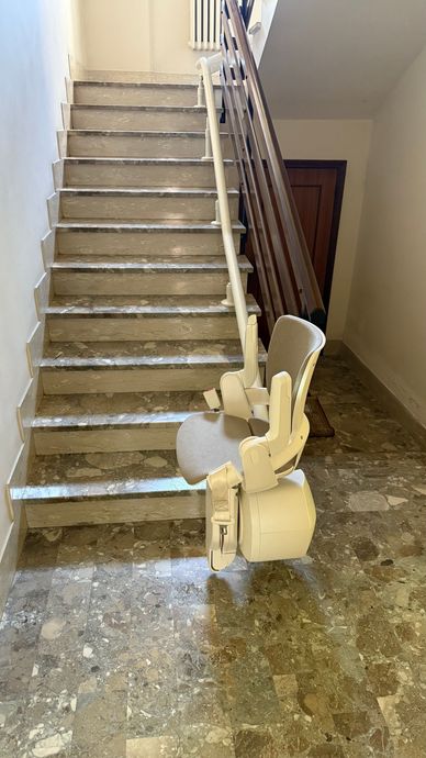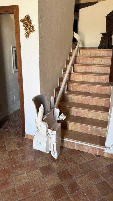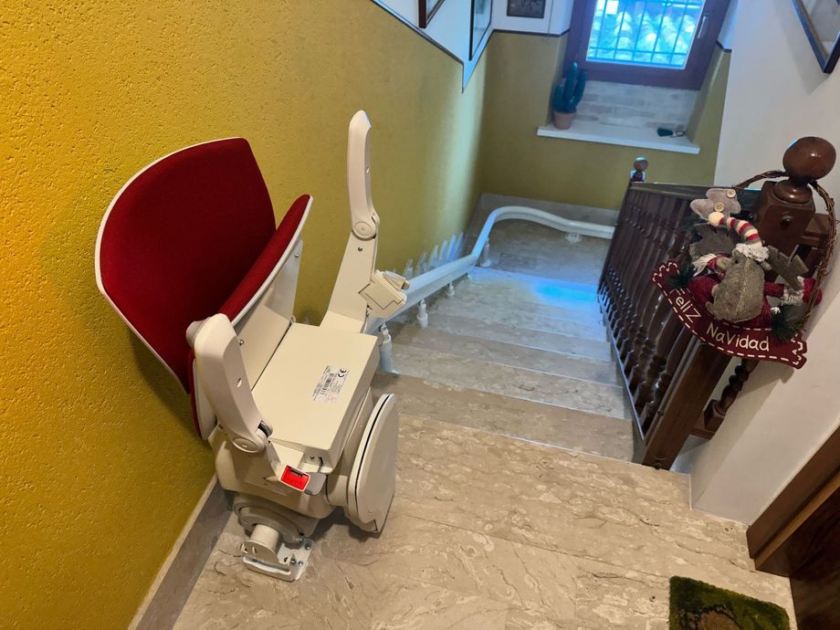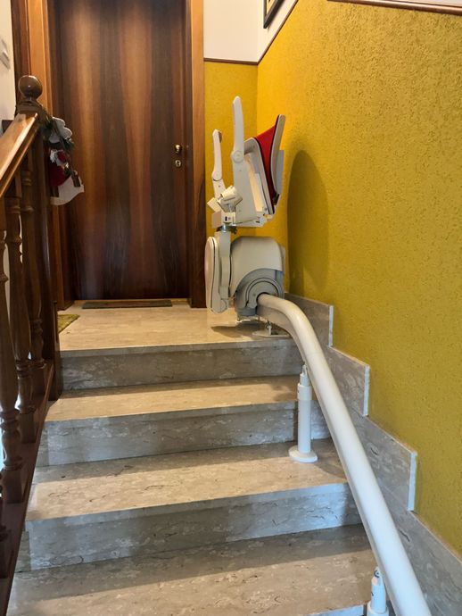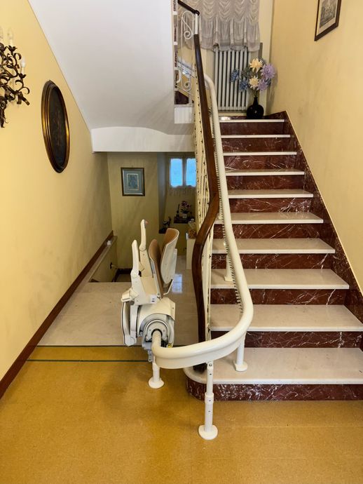 Presso la nostra sede a Pollenza, potrai visionare anche il montascale con poltroncina pensato appositamente per tutte le scale che formano una curva o una qualsiasi variazione di pendenza. Si tratta di un prodotto di alta qualità, in grado di offrire un trasporto comodo e tranquillo.